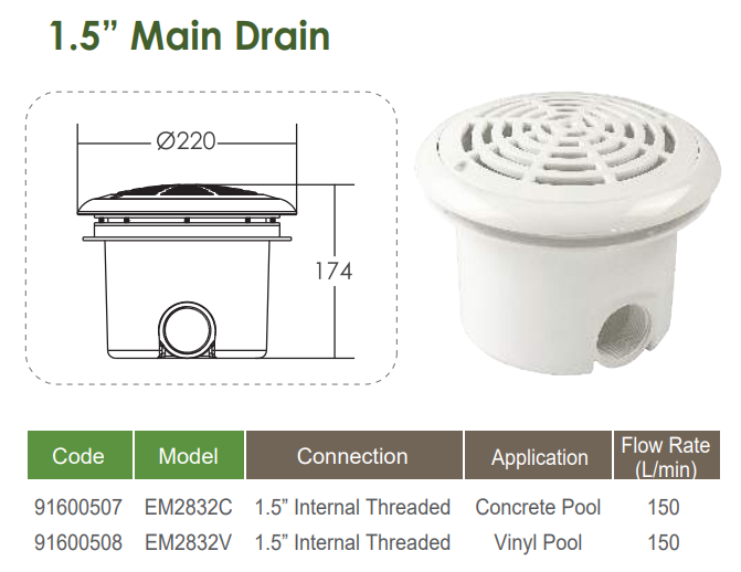Mua tại TiktokTHÔNG TIN SẢN PHẨM Hộp thu đáy Emaux EM2832C Lưu lượng: 14.3 m3/h Kết nối: 60 mm Hãng sản xuất: Emaux – China