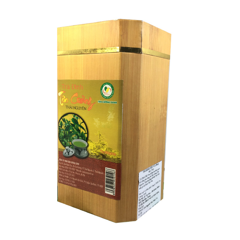 - Trà được sao chế bằng kỹ thuật truyền thống của nghệ nhân gia truyền. Đặc sản xưa chỉ dành để Tiến Vua nên gọi là Trà Đinh Tiến Vua. Khách hàng chia sẻ cảm nhận về Tân Cương Xanh: II. THÔNG TIN CHI TIẾT Những búp trà được tuyển lựa khắt khe từ những đồi trà tốt nhất từ vùng đất Tân Cương (Thái Nguyên). Vùng đất Tân Cương được bao bọc bởi Sông Công - Hồ Núi Cốc mang trong mình câu chuyện Chàng Công - Nàng Cốc đã trở thành huyền thoại. Thời điểm thu hái là lúc sáng tinh mơ, khi sương mai còn đọng trên búp. Chỉ thu hái khi mặt trời chưa lên, nắng quá không hái, gặp hôm trời mưa cũng không hái. Những đọt trà tươi non nhỏ xíu như đầu cây đinh nên gọi là Trà Đinh. Em gái thôn nữ cẩn thận ngắt từng đọt trà với bàn tay khéo léo và nâng niu. Trà sau khi thu hái được chế biến riêng với bàn tay tài hoa của nghệ nhân truyền thống và BÍ QUYẾT CHỈNH LỬA GIA TRUYỀN. Vậy nên, thưởng thức Trà Đinh Tiến Vua là thưởng thức tinh túy đất trời + sự cần lao của em Thôn nữ + tinh hoa nghệ thuật sao chế cổ truyền. Sản phẩm xưa chỉ dành để cho Vua, chúa sử dụng nên gọi là Trà Đinh Tiến Vua. III. HƯỚNG DẪN SỬ DỤNG