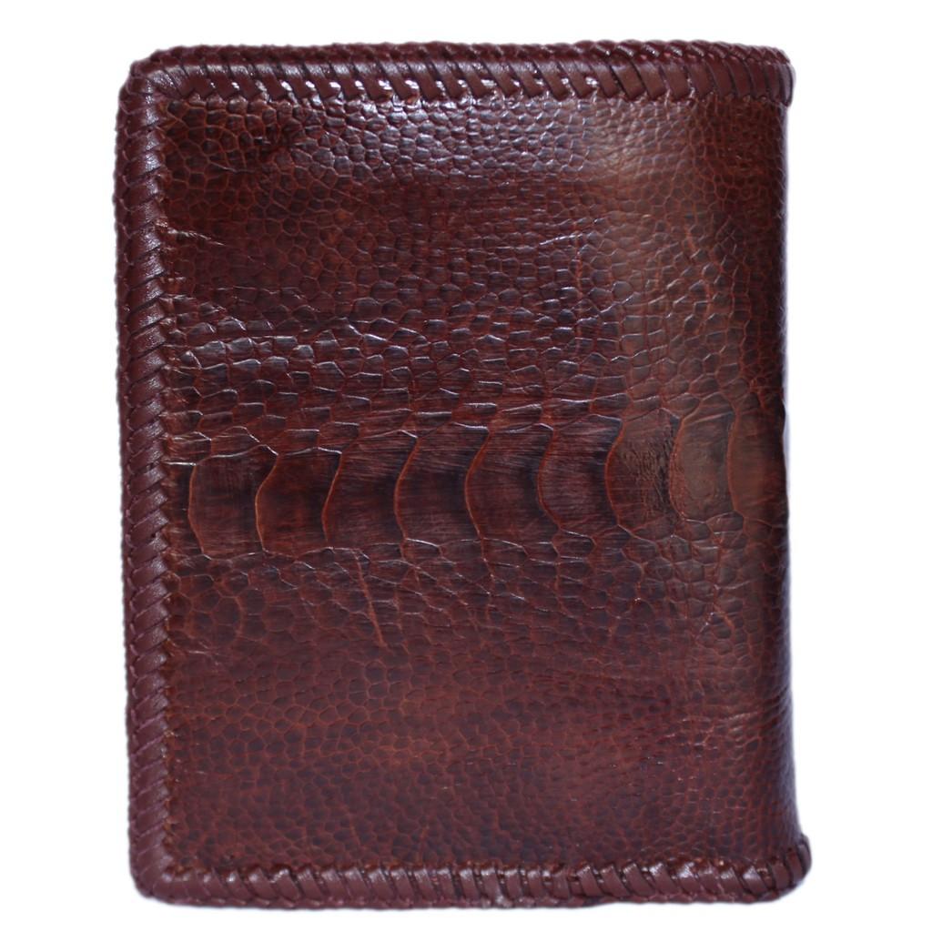 - Tên sản phẩm: Bóp nam da đà điểu Huy Hoàng da chân đan viền kiểu đứng màu nâu đỏ - HP2445