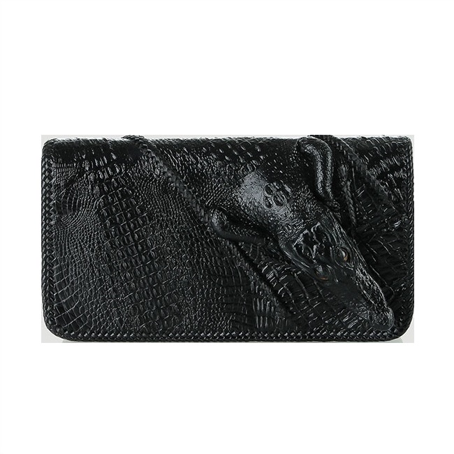 - Tên sản phẩm: Bóp nữ da cá sấu Huy Hoàng nhiều ngăn đầu cá sấu đan viền màu đen, nâu đất, vàng, nâu đỏ