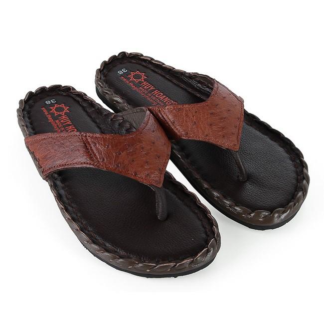 ✨HP7417-18-19-20 - Dép nam da đà điểu Huy Hoàng da hột đan màu đen, nâu đất, vàng bò, nâu đất