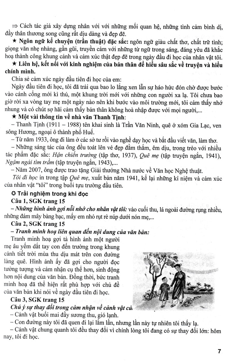Ngoài việc hướng dẫn gợi ý trả lời các câu hỏi trong sách giáo khoa, cuốn sách còn giúp thầy cô và các em ôn tập, củng cố, mở rộng thêm vốn kiến thức môn Ngữ văn cũng như tự tin viết và nói được những kiểu văn bản: biểu cảm, nghị luận, thuyết minh,...