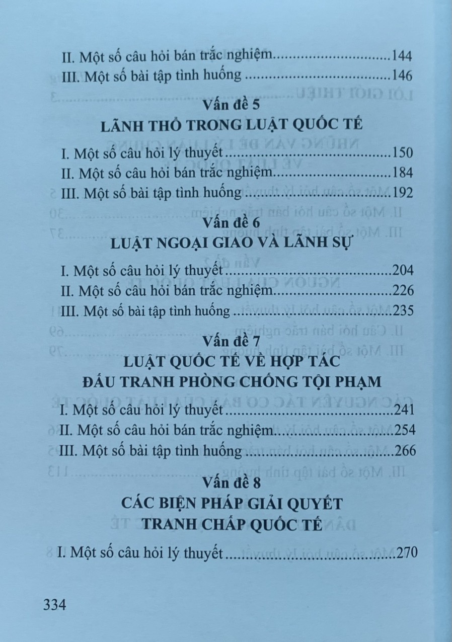 Cuốn sách được thiết kế rất sát với các vấn đề của các giáo trình công pháp quốc tế phổ biến hiện nay, qua đó sẽ giúp người học vừa tận dụng được nguồn tri thức quý báu từ các giáo trình, các bài tập giảng, vừa làm sâu sắc hơn kiến thức và những câu hỏi xoay quanh các vấn đề của các môn học."