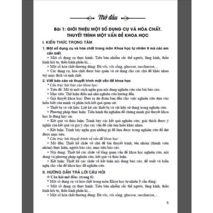 HƯỚNG DẪN TRẢ LỜI CÂU HỎI VÀ BÀI TẬP KHOA HỌC TỰ NHIÊN 9 (Dùng kèm SGK Chân trời sáng tạo).