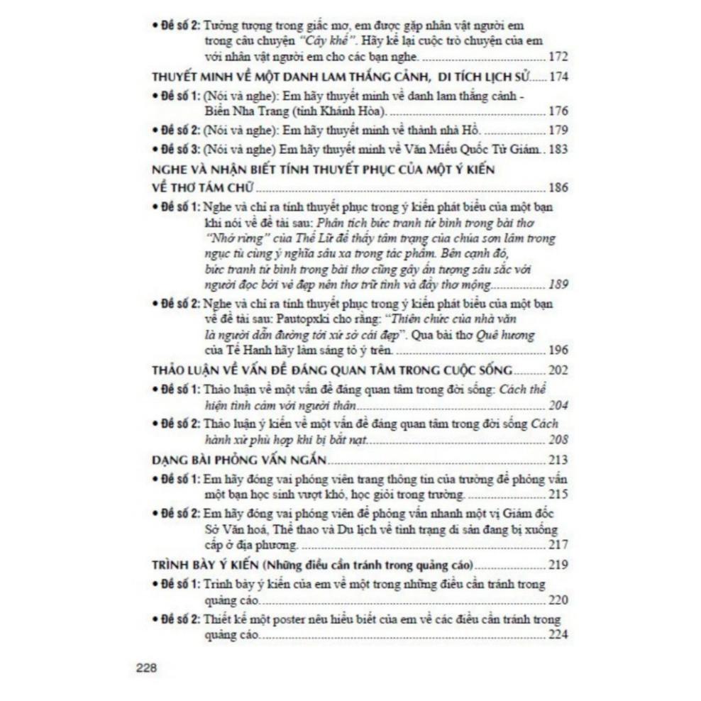 t- Phần đề minh họa: các dàn ý và bài tham khảo (gợi ý dàn bài và bài văn hoàn chỉnh) hướng dẫn học sinh kĩ năng viết, nói – nghe.
