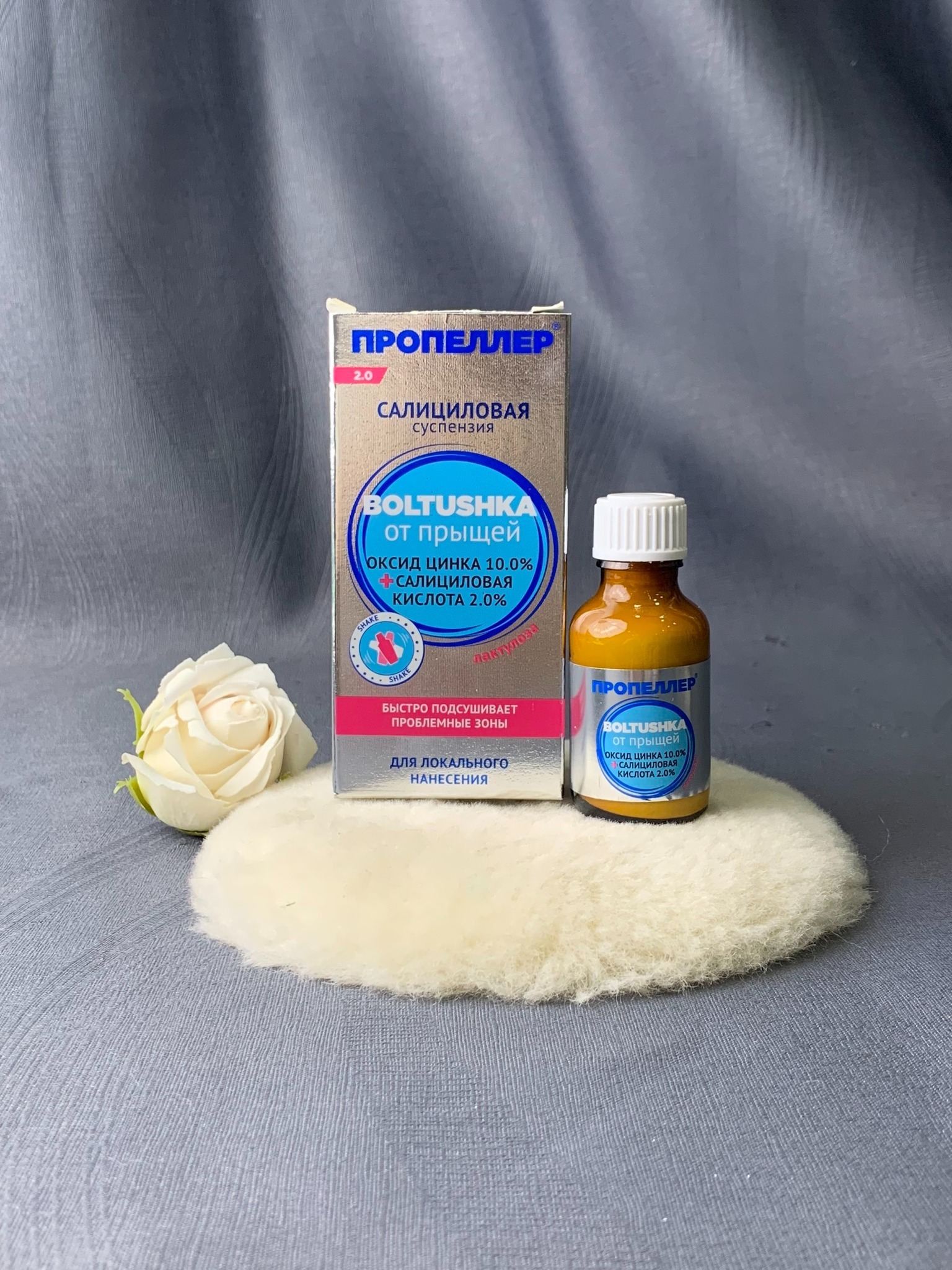 - Kẽm - Ngay lập tức làm khô vết thương, giảm viêm, giúp giảm mụn trứng cá và các khuyết điểm trên da. Boltushka loại bỏ mụn nhanh chóng làm khô vùng da tổn thương, giảm viêm và mẩn đỏ, làm lành cấu trúc da bị tổn thương, khôi phục làn da khỏe mạnh, loại bỏ sẹo và mụn trứng cá, đồng thời ngăn ngừa sự hình thành mụn mới.