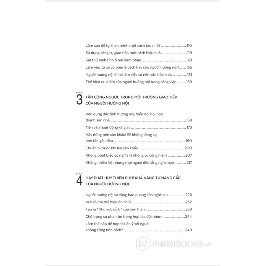 Đây là cuốn cẩm nang hữu ích giúp những người hướng nội nơi công sở hiểu rõ tính cách và sở trường của bản thân, biết cách “phân phối năng lượng” và “chọn thời cơ tấn công” để tỏa sáng. Không mệt mỏi với việc xã giao thù tạc, nhưng vẫn có quan hệ tốt đẹp với cấp trên, đồng nghiệp, khách hàng. Không nhiều lời, nhưng mọi người đều lắng nghe bạn.