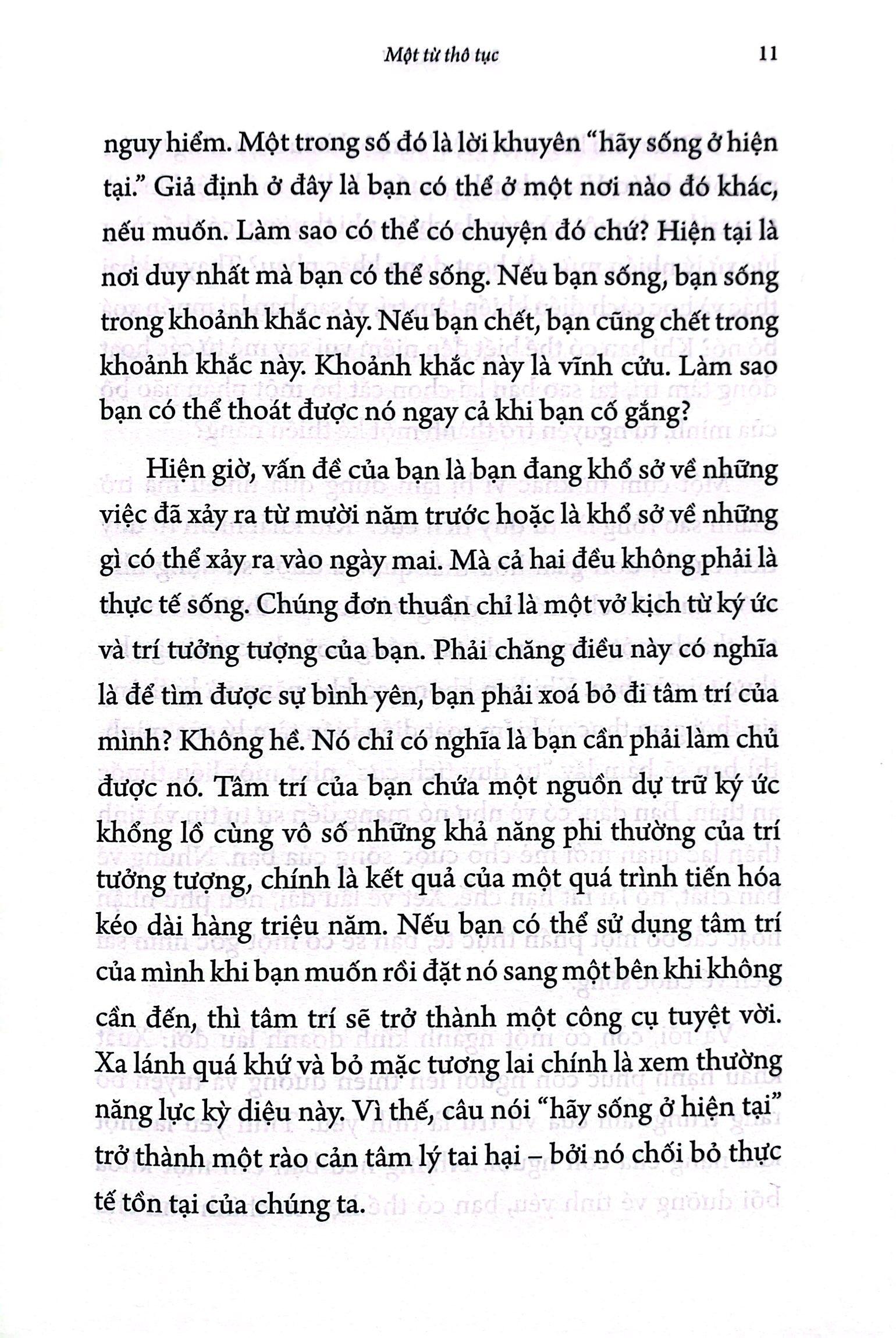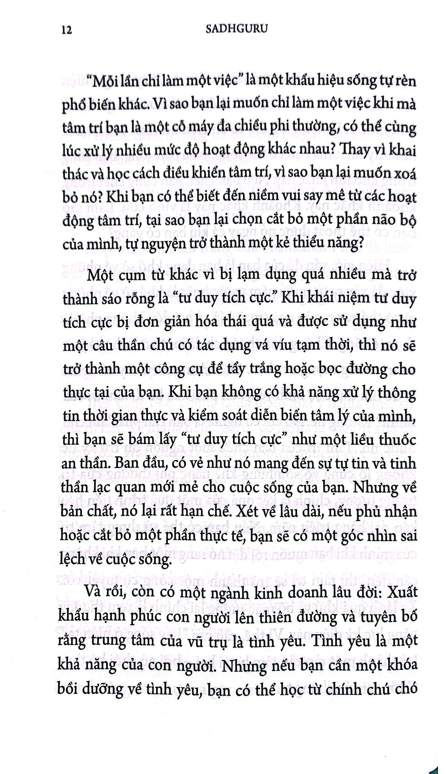 Mục đích của cuốn sách này là để biến niềm vui luôn thành người bạn đồng hành của bạn. Để làm được điều đó, cuốn sách này không mang đến cho bạn một bài thuyết giáo, mà là một môn khoa học; không phải một lời giáo huấn, mà là một công nghệ; không phải một giới luật, mà là một con đường. Bây giờ chính là lúc để bắt đầu khám phá ngành khoa học đó, vận hành công nghệ đó, và bước đi trên con đường đó.