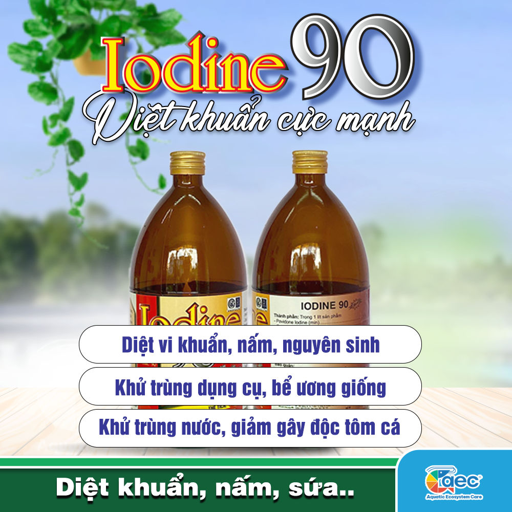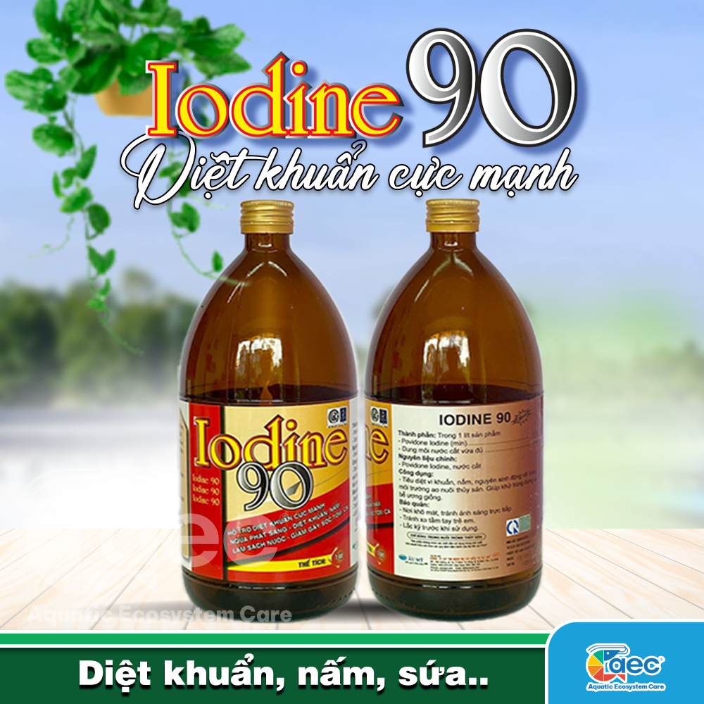 Mua tại TiktokIODINE 90 là sản phẩm diệt khuẩn phổ rộng, giúp xử lý hiệu quả vi khuẩn, ký sinh trùng và nấm bệnh trong ao nuôi tôm cá. Với công thức an toàn, IODINE 90 không làm mất tảo hay gây sốc cho tôm, bảo vệ môi trường ao nuôi luôn ổn định. Công dụng nổi bật