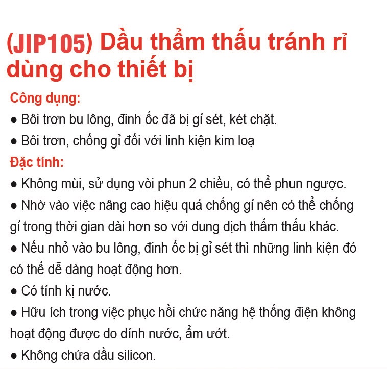 - Có tác dụng chống rỉ và ngăn ngừa rỉ sét trong một thời gian dài so với các loại dầu thâm nhập khác