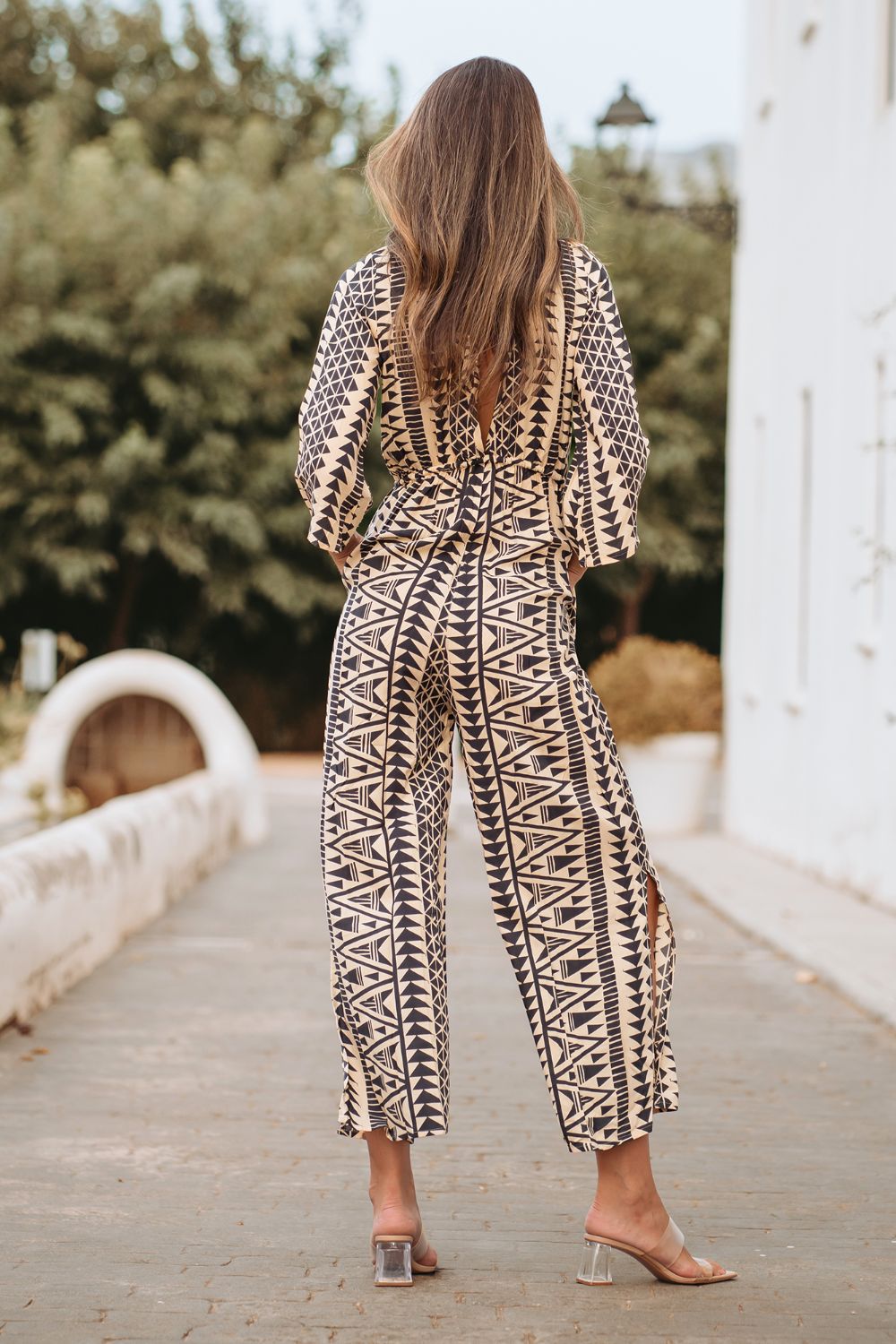 Jumpsuit Dài Tay Cotton, chất liệu cotton mềm mại. Họa tiết thổ cẩm độc đáo. Thun eo co giãn. Chân quần xẻ tà. Có túi 2 bên hông. Dài 135cm (45x135) Phù hợp đi biển,