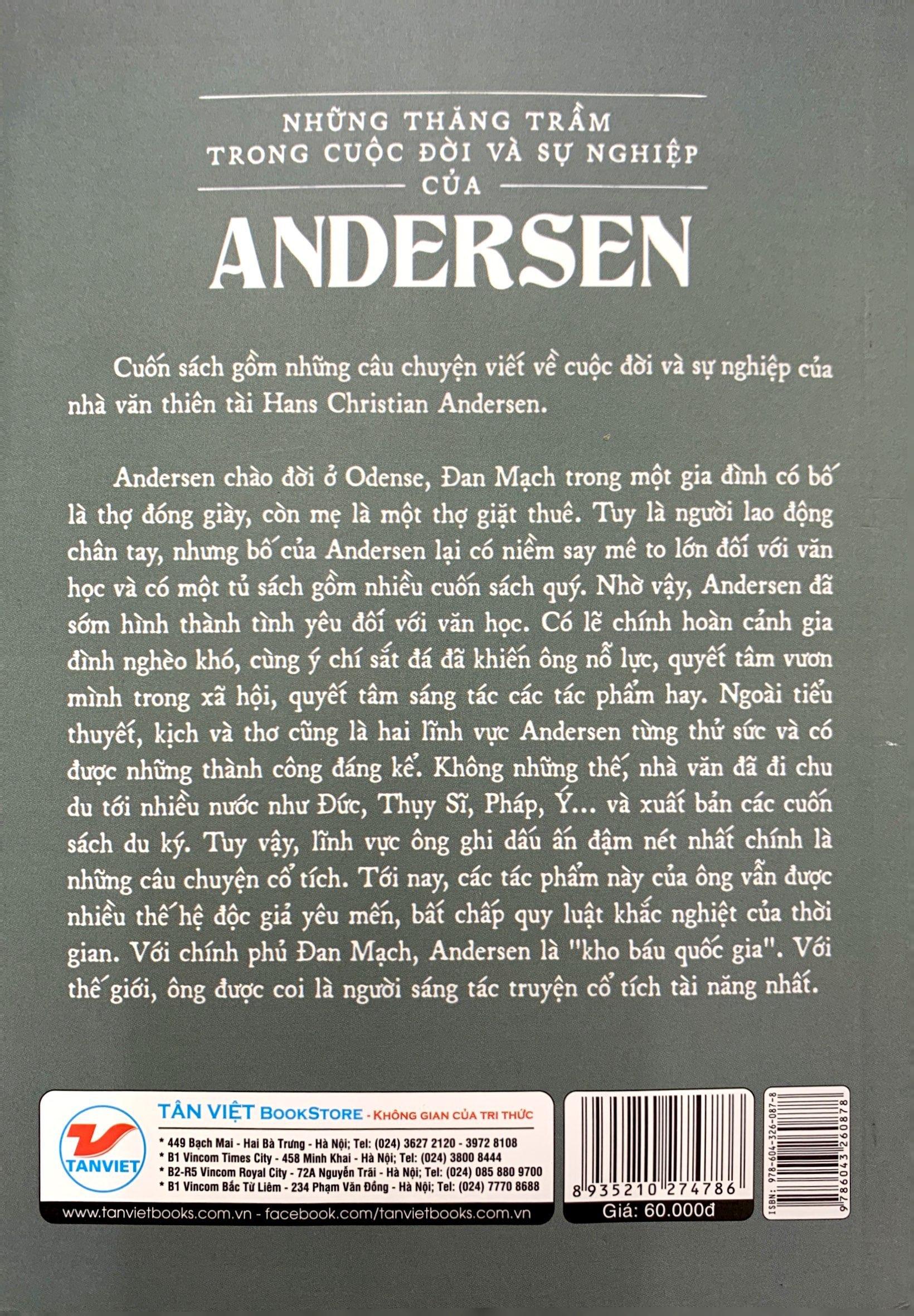 Cuốn sách gồm những câu chuyện viết về cuộc đời và sự nghiệp của nhà văn thiên tài Hans Christian Andersen.