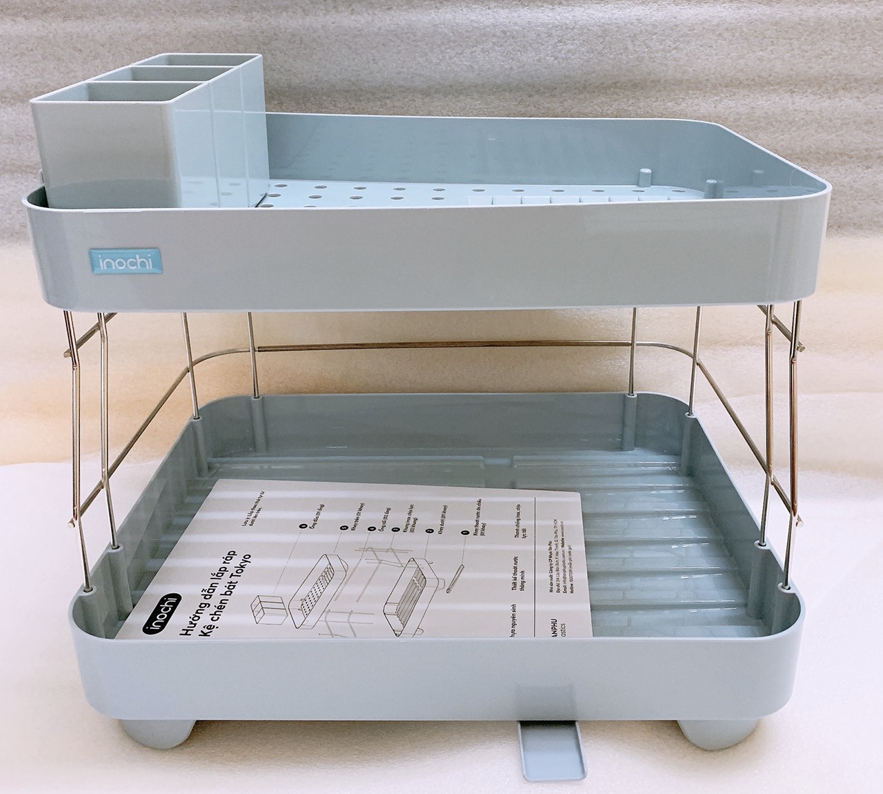 Kệ chén bát Tokyo (có nắp) Kích cỡ: 469 x 336 x 294mm Khối lượng: 2800gr Nguyên liệu: Nhựa PP (Polypropylen) nguyên sinh, hạt màu, phụ gia kháng khuẩn (Ag+) Với thiết kế dạng nắp