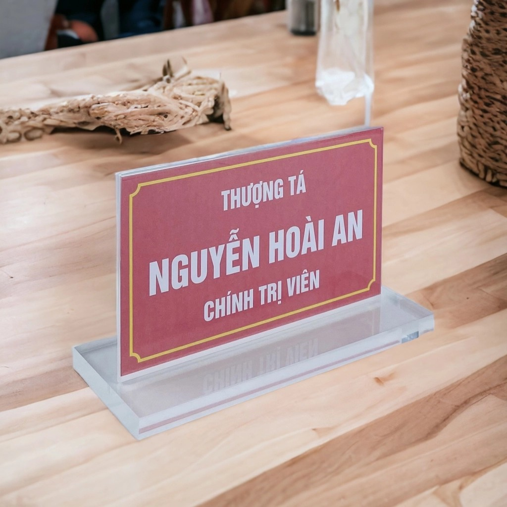 Kệ mica 2 mặt Enter E17C để bàn là sản phẩm làm từ Mica Đài Loan, dùng để giới thiệu tên và chức vụ của người sử dụng, sản phẩm thường được các công ty hay các sở ban ngành lựa chọn để ở bàn làm việc của những người giữ vị trí quan trọng hay được sử dụng ở các sự kiện, cuộc họp để trên bàn các đại biểu.