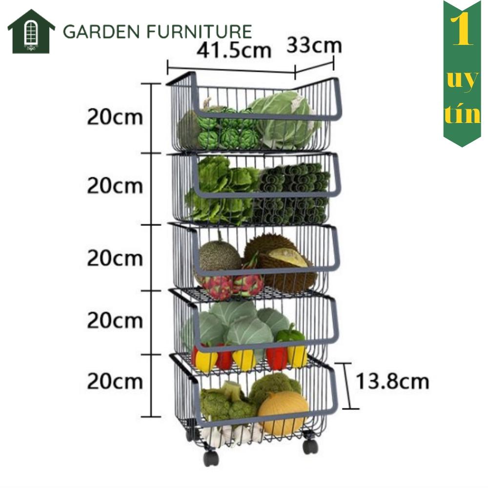 Kệ sắt 5 tầng đa năng, tháo rời có nắp đậy tiện dụng, giá kệ nhà bếp phòng khách cóbánh xe di chuyển dễ dàng đựng rau cũ MÔ TẢ SẢN PHẨM Kích thước: 5 tầng : 42 x 36 x 108 cm