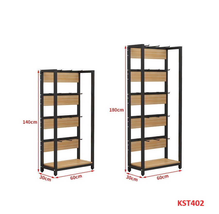 Kệ trưng bày sản phẩm, hàng hóa , kệ trang trí khung sắt mặt gỗ có nhiều kiểu dáng cho khách hàng lựa chọn theo nhu cầu riêng của từng cửa hàng như: