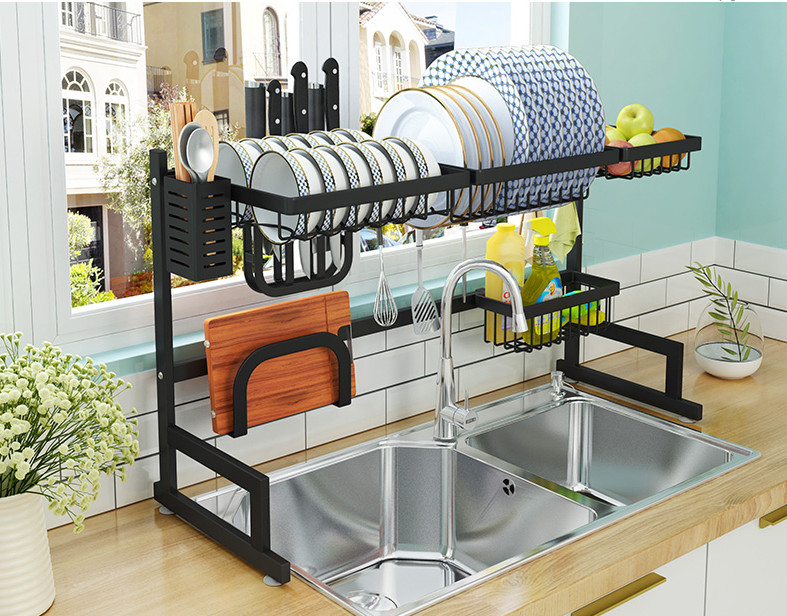 Kệ gác bồn rửa chán có thiết kế đặc biệt, thông minh và tiện dụng, có thể thay đổi kích thước chiều dài nên phù hợp với hầu hết các loại bồn rửa: Kích thước