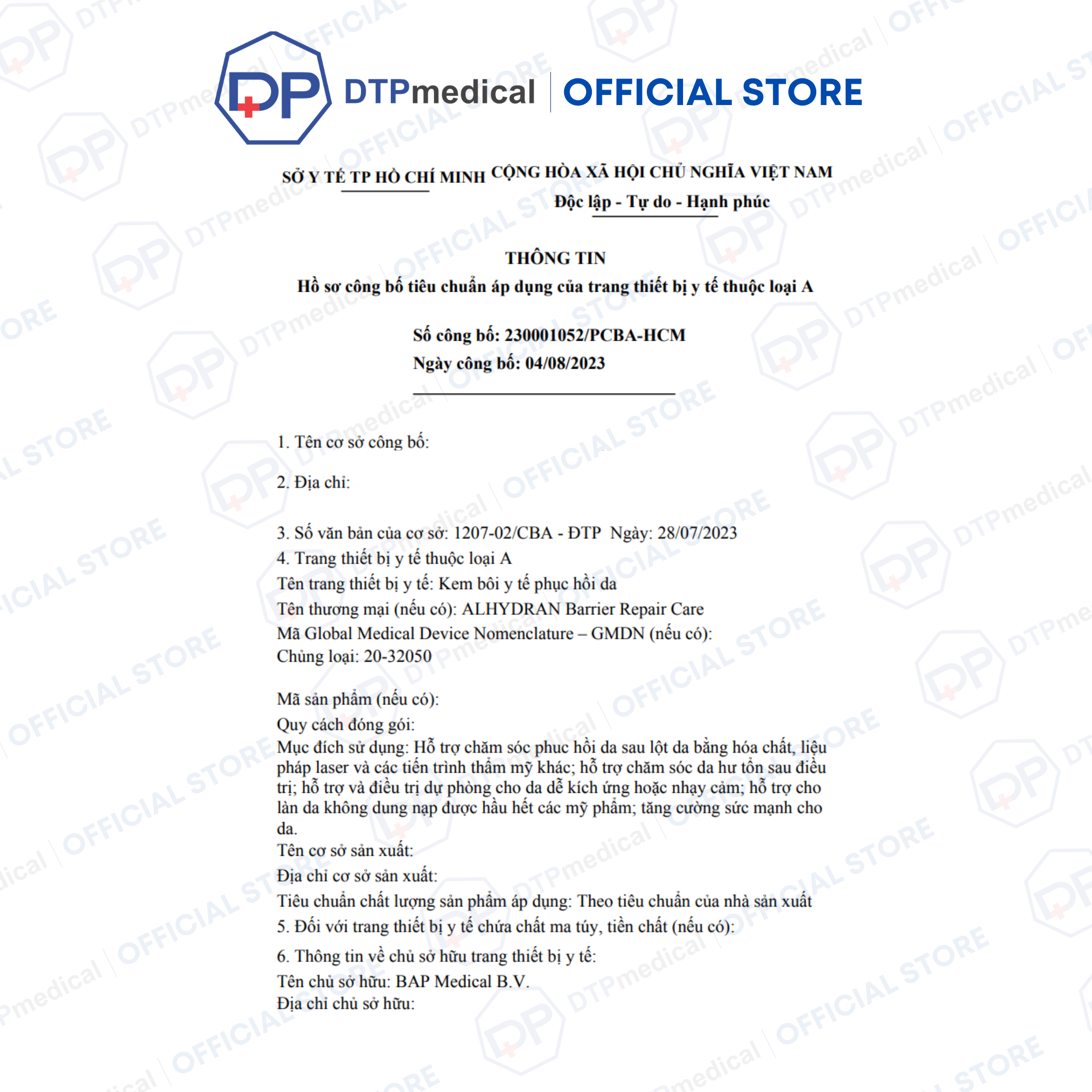 - BAP MEDICAL sử dụng công thức đã được khoa học chứng minh của ALHYDRAN làm cơ sở. ALHYDRAN Cracked Dry Skin Care kết hợp các đặc tính độc đáo của gel Aloe Vera với các thành phần hiệu quả khác.