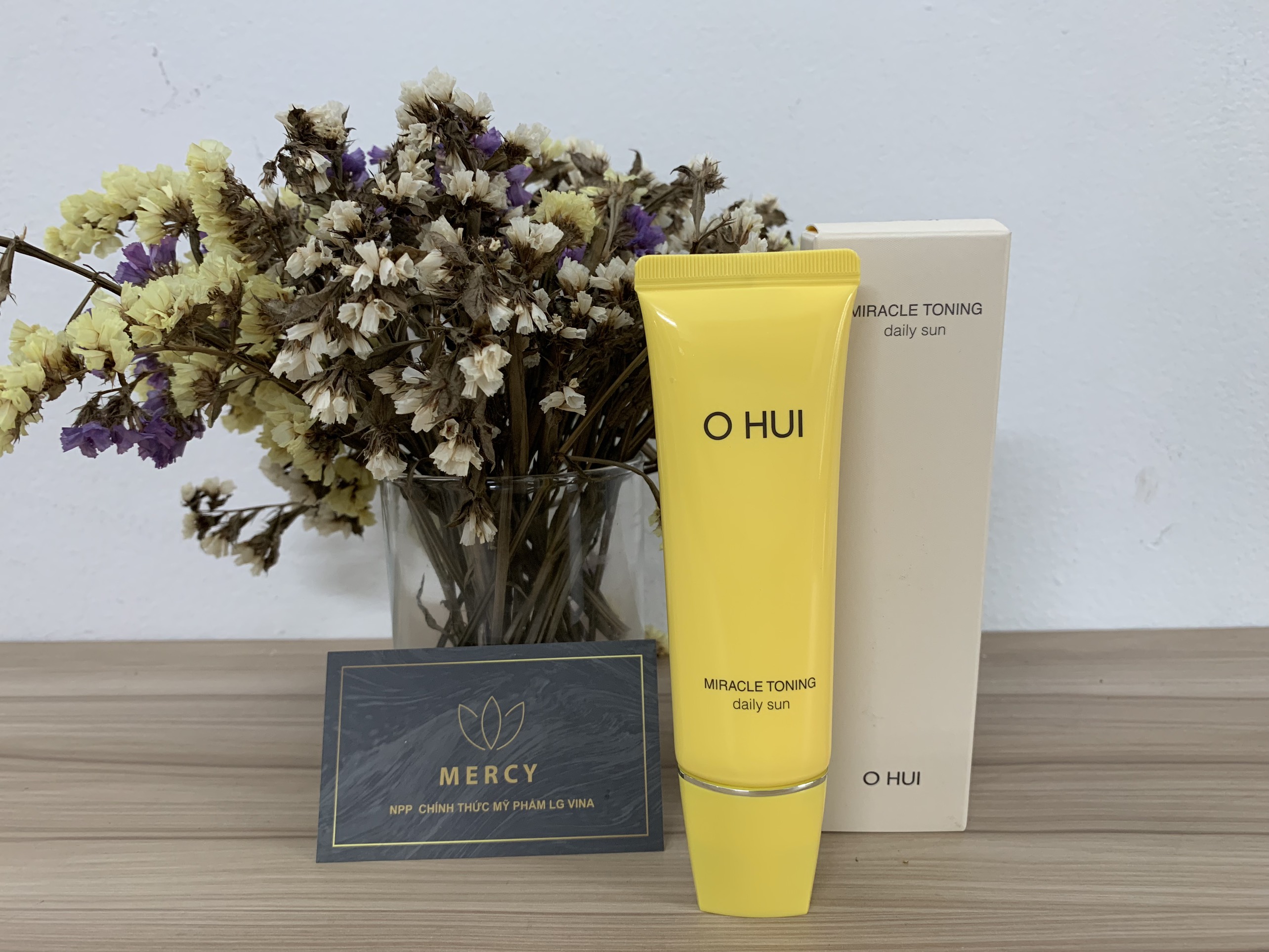 Kem chống nắng OHUI dòng Miracle Toning bảo vệ tốt làn da trước tia UV với lớp kem chống nắng ráo và mỏng. Dung tích: 50ml