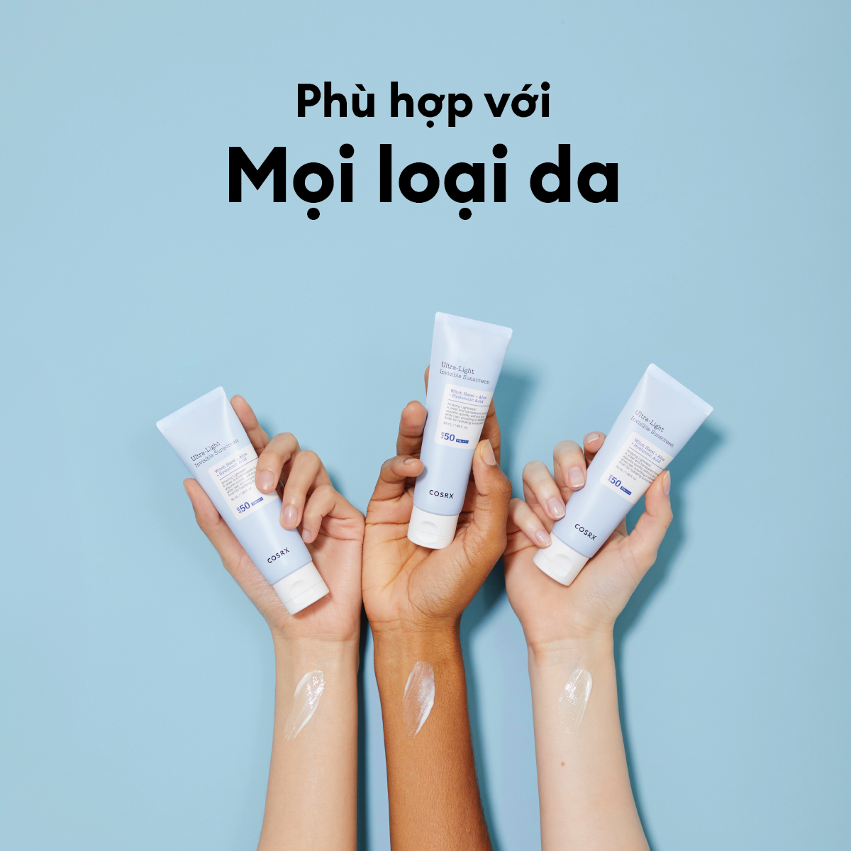 - Thoa lại trong ngày nếu cần thiết, đặc biệt trong trường hợp tiếp xúc với ánh nắng mặt trời trong thời gian dài; QUY TRÌNH DƯỠNG DA CHUẨN COSRX: Tẩy trang > Sữa rửa mặt > Tẩy da chết hoá học AHA/ BHA > Dán mụn/ Chấm mụn > Nước cân bằng (Toner) > Tinh chất dưỡng (Essences/ Serum/ Ampoule) > Dưỡng mắt > Dưỡng ẩm > Kem chống nắng Xuất xứ và sản xuất: Hàn Quốc Hạn sử dụng: 3 năm kể từ ngày sản xuất Ngày sản xuất: In trên bao bì sản phẩm Bảo quản: Nơi khô mát, tránh ánh nắng mặt trời THÀNH PHẦN Aloe Barbadensis Leaf Water, Diethylhexyl Succinate, Propanediol, Aqua/Water, Drometrizole Trisiloxane, Ethylhexyl Triazone, Niacinamide, Diethylamino Hydroxybenzoyl Hexyl Benzoate, Terephthalylidene Dicamphor Sulfonic Acid, 1,2-Hexanediol, Behenyl Alcohol, Methyl Trimethicone, Sodium Polyacryloyldimethyl Taurate, Hamamelis Virginiana (Witch Hazel) Leaf Water, Tromethamine, Polyacrylate Crosspolymer-6, Arachidyl Alcohol, Caprylyl Glycol, Ethylhexylglycerin, Arachidyl Glucoside, Sodium Metaphosphate, Adenosine, Tocopherol, Sodium Hyaluronate, Allantoin, Citric Acid, Sodium Benzoate, Potassium Sorbate >> YÊN TÂM KHI MUA SẮM TẠI GIAN HÀNG CHÍNH HÃNG - COSRX FLAGSHIP STORE ● Cam kết 100% sản phẩm chính hãng ● Nhập khẩu và phân phối độc quyền tại Việt Nam bởi Công ty TNHH KOCOS ● Sản phẩm chính hãng có tem chống hàng giả và nhãn phụ tiếng Việt ● Tư vấn trực tuyến với chuyên gia >> COSRX cam kết sản phẩm: ● Không thử nghiệm trên động vật ● Không chất bảo quản Paraben ● Không chất tẩy rửa Sulfate ● Không hương liệu hoá học Phthalates THÔNG TIN THƯƠNG HIỆU COSRX ra đời vào năm 2013 tại Hàn Quốc sau hơn một thập kỷ nghiên cứu về da và nhu cầu người tiêu dùng với kinh nghiệm trong ngành làm đẹp của người sáng lập - Mr.RX. Tên thương hiệu COSRX được ghép từ Cosmetic (mỹ phẩm) và RX (theo toa) với mục tiêu giải quyết các vấn đề về mụn mang lại vẻ đẹp hoàn hảo cùng bảng thành phần sản phẩm phù hợp với người châu Á. Hiện tại, COSRX đã có mặt tại Việt Nam và được phân phối chính thức, độc quyền bởi Công ty TNHH KOCOS.