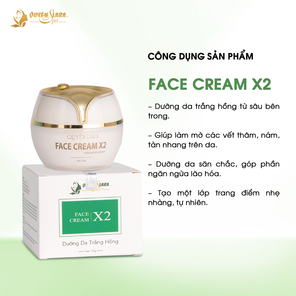 ✨Kem Dưỡng Da FACE CREAM X2 Quyên Lara 30g, Giúp Da Trắng Hồng, Săn Chắc, Mờ Vết Thâm Nám, Chống Lão Hóa, Tạo 1 Lớp Trang Điểm Nhẹ Nhàng Tự Nhiên