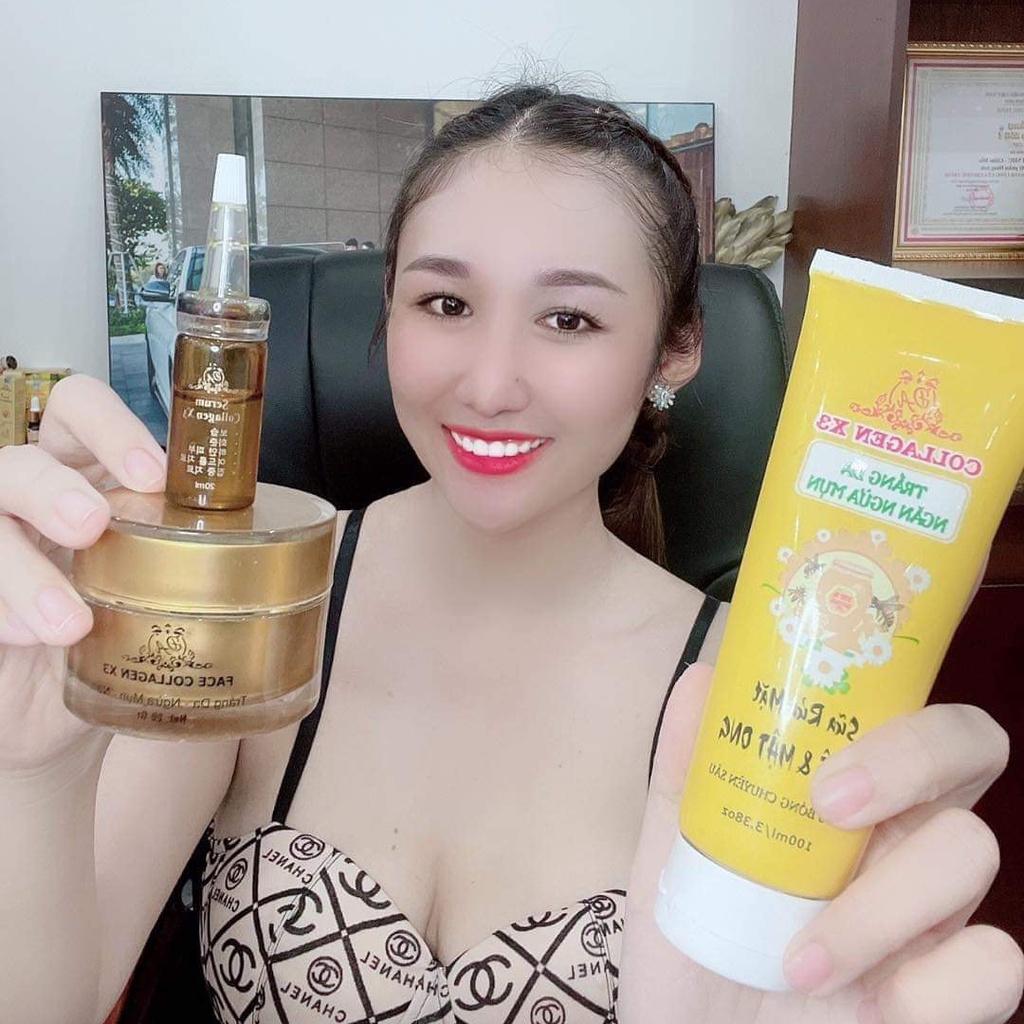 Sữa Rửa Mặt Nghệ Mật Ong Collagen X3 làm sạch da, ngừa mụn, se khít lỗ chân lông CÔNG DỤNG Sữa Rửa Mặt Colagen X3: - Làm sạch bụi bẩn gấp 2 lần srm thường