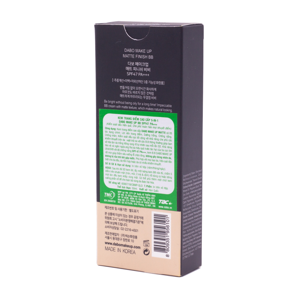 ✨Kem nền trang điểm cao cấp Hàn Quốc DABO MAKE UP MATTE 5 in 1 BB SPF47 PA+++ (50ml) – Hàng Chính Hãng