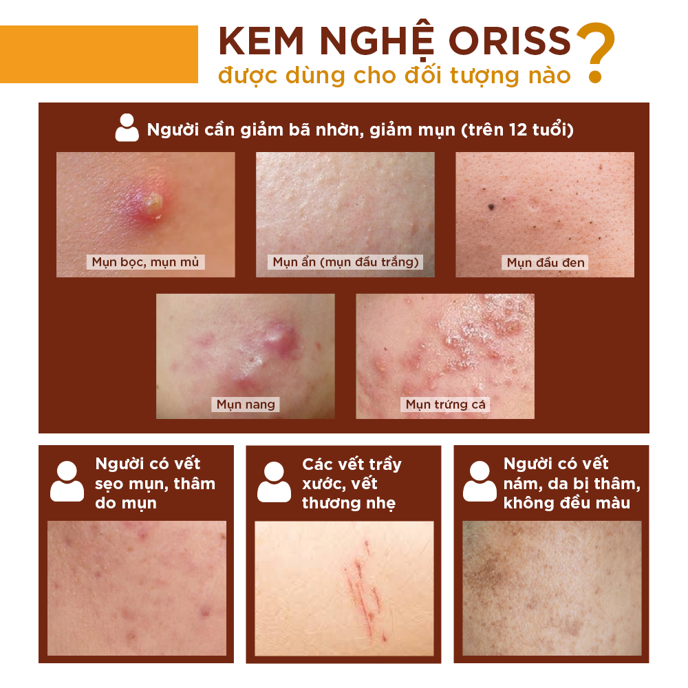 SỞ HỮU BÍ QUYẾT MỜ THÂM SẸO NHỜ KEM NGHỆ ORISS Bạn thường xuyên phải "che giấu" sẹo mụn hay vết thâm bằng nhiều cách như đeo khẩu trang liên tục hay dùng rất nhiều