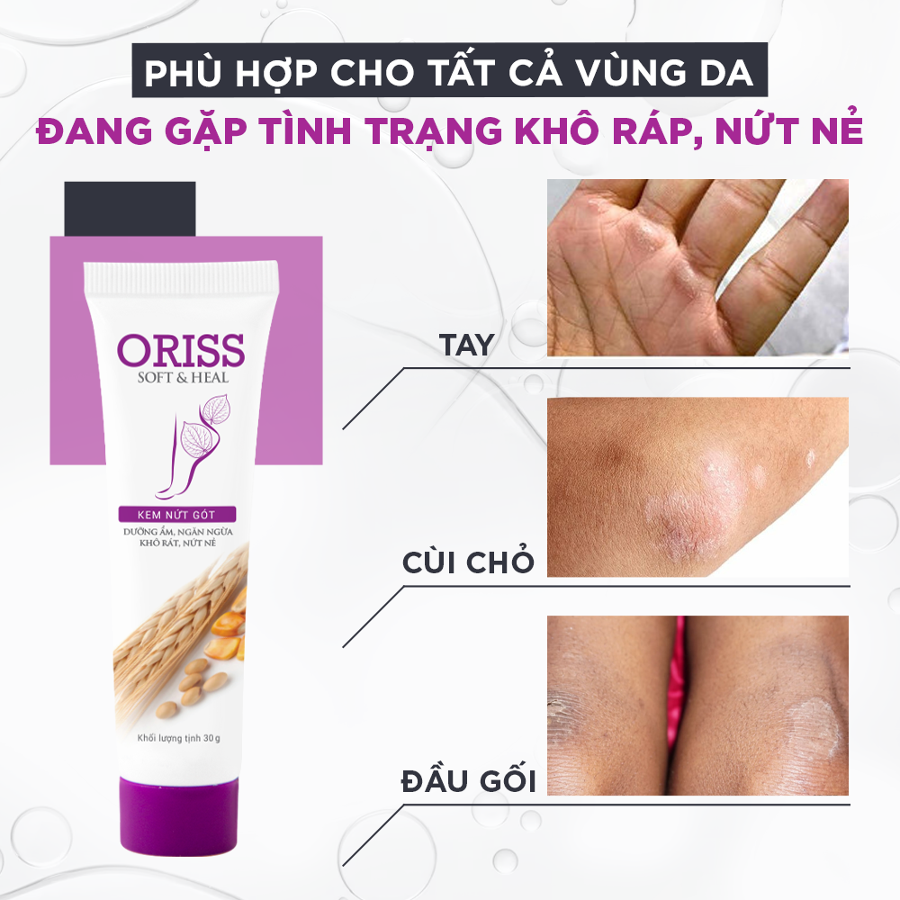 Kem Dưỡng Da Gót Chân Oriss giúp dưỡng ẩm hiệu quả, làm mềm và dịu các vùng da khô, ngăn ngừa hiện tượng nứt nẻ tăng độ đàn hồi cho da, đồng thời hỗ trợ giảm đau tại những vùng da nứt nẻ.