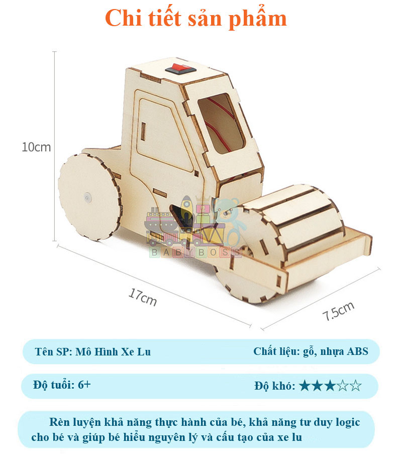 Bộ Đồ Chơi Khoa Học Tự Làm Máy Ủi, Bộ Đồ Chơi Lắp Ghép STEM Mô Hình Máy Ủi, Bộ Đồ Chơi Gỗ Cao Cấp Khoa Học Tự Làm DIY Wood Steam Chất liệu: gỗ,