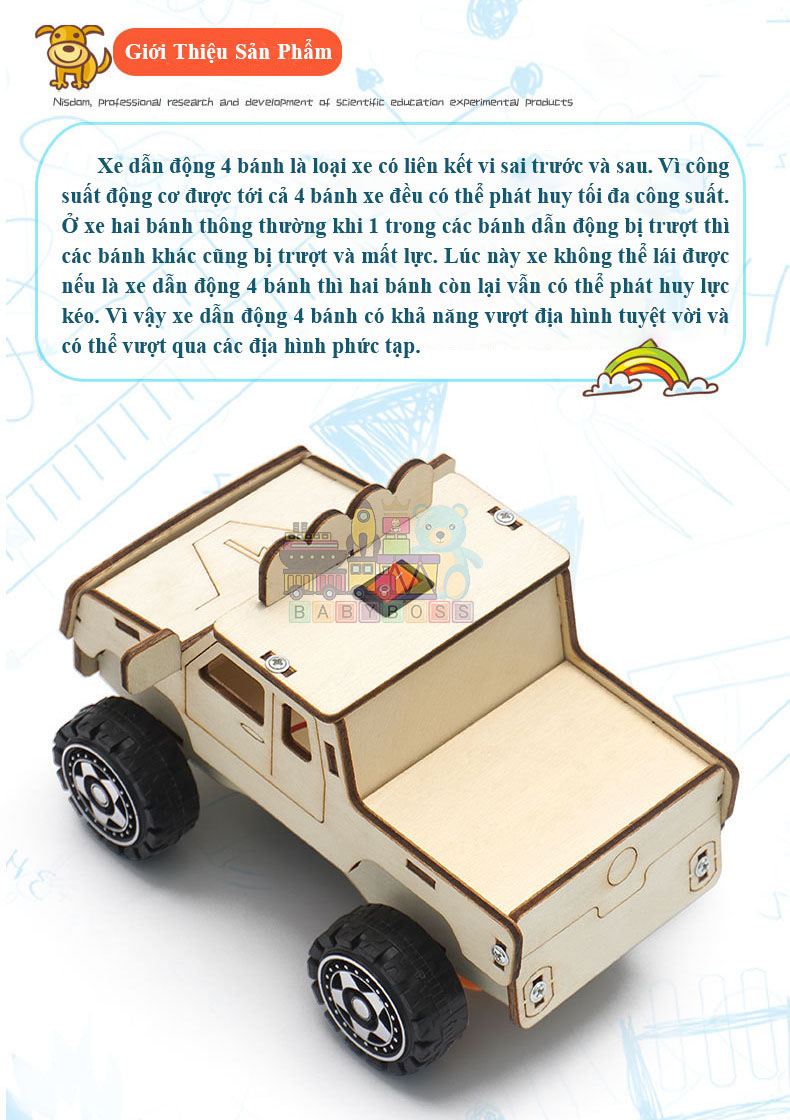 Bộ Đồ Chơi Khoa Học Tự Làm Xe Địa Hình, Bộ Đồ Chơi Lắp Ghép STEM Mô Hình Xe Địa Hình , Bộ Đồ Chơi Gỗ Cao Cấp Khoa Học Tự Làm DIY Wood Steam