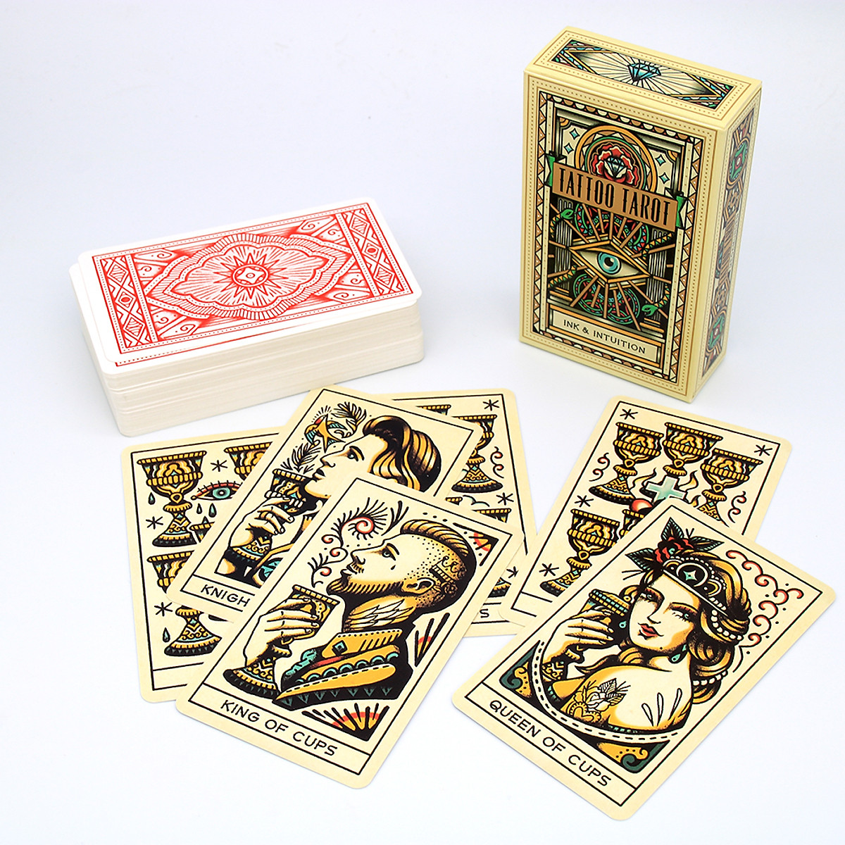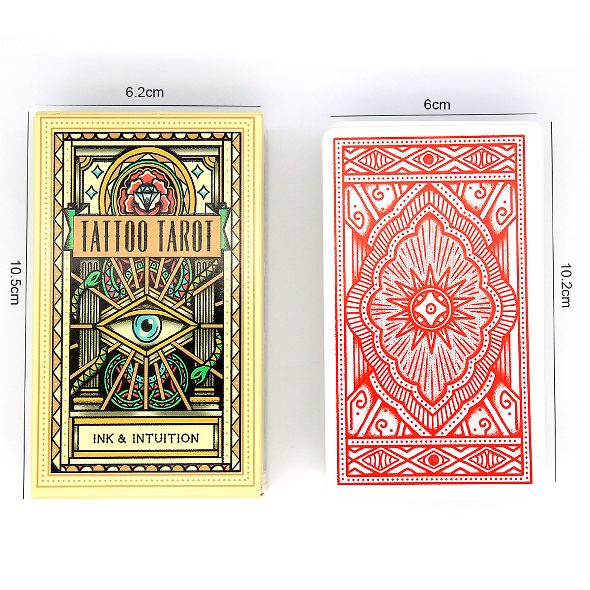 Bộ bài Tattoo Tarot Ink & Intuition sử dụng các tông màu theo phong cách vintage cổ xưa, sử dụng chuẩn Marseille làm cho bộ bài thêm phần tinh tế và đầy thử thách. Có thể bạn đã sử dụng qua các bộ bài Tarot theo chuẩn RWS hay Thoth thì Tattoo Tarot nên xuất hiện trong bộ sưu tập của bạn, tiên phong cho việc học tập và sử dụng Tarot theo chuẩn Marseille.