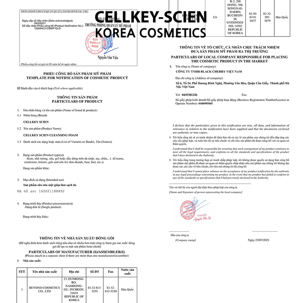 - Tại Việt Nam, Công ty TNHH BLACK CHERRY VIỆT NAM là đơn vị nhập khẩu và phân phối độc quyền. Đặc biệt dòng sản phẩm tế bào gốc thực vật Cellkey-Scien này đã được cấp Giấy chứng nhận bảo hộ thương hiệu. Xuất xứ thương hiệu: Hàn Quốc Nơi sản xuất: Hàn Quốc Dung tích: 150ml NSX & HSD: 03 năm trước hạn sử dụng - In trên vỏ sản phẩm. CELLKEY-SCIEN OFFICIAL - STORE CHÍNH HÃNG