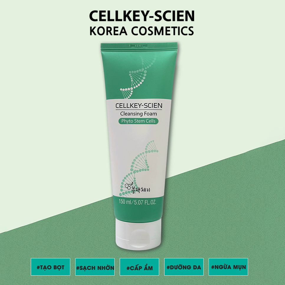✨Kem Rửa Mặt Tế Bào Gốc Trà Xanh Kiềm Dầu Làm Sạch Sâu Dưỡng Ẩm Da Dầu Mụn Nhạy Cảm Cellkey-Scien Cleansing Foam Phyto Stem Cells 150ml