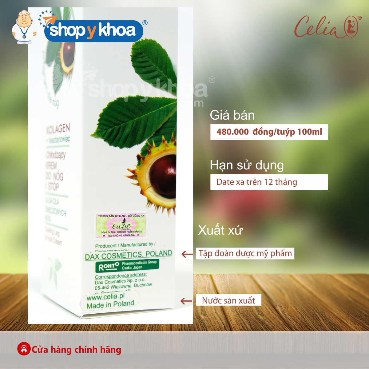 Mua tại Tiktok- Kem thoa chăm sóc chân suy giãn tĩnh mạch Celia (100ml) giúp giảm hiện tượng đau nhức, mỏi chân, đem lại cảm giác thoải mái, dịu nhẹ và thư giãn tức thì.