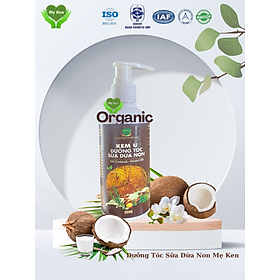 Mua tại TiktokKEM Ủ TÓC SỮA DỪA NON MẸ KEN 200ml Thành phần: Tinh chất sữa bò tươi , tinh dầu dừa , chiết xuất hà thủ ô đỏ , dầu Argan , tinh dầu bưởi , bơ hạt mỡ , tầm ma , bồ công anh , dầu bơ , chiết xuất mồng tơi , chiết xuất nha đam , hạt lanh , chiết xuất hương thảo Công Dụng :