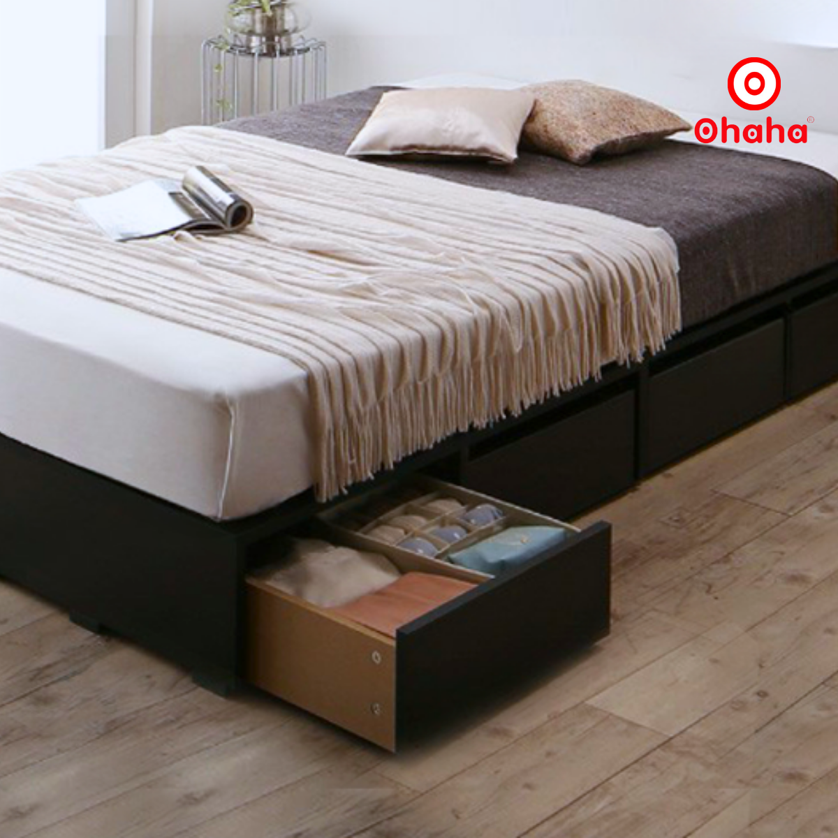 Tối giản nhưng không đơn điệu, Giường Ngủ Gỗ OHAHA Cao Cấp 4 Hộc Kéo OH050 - Kiểu Giường Hộp Chuẩn Bắc Âu được thiết kế theo phong cách Bắc Âu thời thượng. Thiết kế nhỏ gọn, trang nhã với gang Nâu trung tính tân cổ điển tô điểm cho không gian phòng ngủ nhẹ nhàng, tràn đầy sức sống.