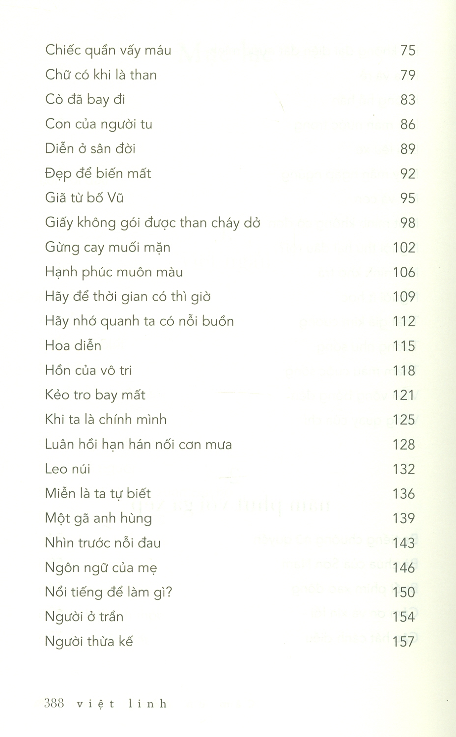 - Giới thiệu tóm tắt tác phẩm: Kẻo tro bay mất – chắt lọc những tinh túy nhất trong nghiệp viết của đạo diễn Việt Linh. Người đọc sẽ đi qua những cung bậc từ “Viết ngắn” đến “Năm phút với ga xép” và cùng tác giả “Ngồi giữa trần gian”. Trong tuyển tập, dù là những đoản văn ngắn ngủi khúc chiết về đời sống, hay những câu chuyện ngồn ngộn tư liệu về phim ảnh, hoặc những uẩn khúc riêng tư về cuộc đời được vạch mở… thì người ta vẫn thấy Việt Linh, đang vạch mở chính trái tim mình, khuyến dụ người đọc cùng xông vào cuộc đời này: dám nhìn nhận, dám phản biện, trở thành công dân có trách nhiệm và sống sao cho tử tế. Đọc những bài viết xốc xáo này, bạn trẻ cũng học được nhiều kỹ năng viết kịch bản phim, viết báo, viết review phim ảnh, biết cách xông vào địa hạt văn chương bằng việc rèn luyện ngôn ngữ và nhìn ra tư liệu từ chất liệu đời sống. Can đảm với nghiệp đạo diễn và cả với nghiệp viết, để rồi chắt chiu và chia sẻ kinh nghiệm đông tây, như người nông dân chắt chiu mùa màng và chia sẻ những trái chín ngon, Kẻo tro bay mất – vừa truyền cảm hứng, vừa như lời nhắc nhở lúc thì nhỏ nhẹ, có khi mang tiếng vang to như tiếng chuông báo động, hối thúc sự chú ý, hay khẩn thiết thay đổi. Dù sao đi nữa, đến với tuyển tập này, bạn sẽ hấp thụ một nhiệt huyết, rằng có làm gì, cũng phải cháy hết mình.