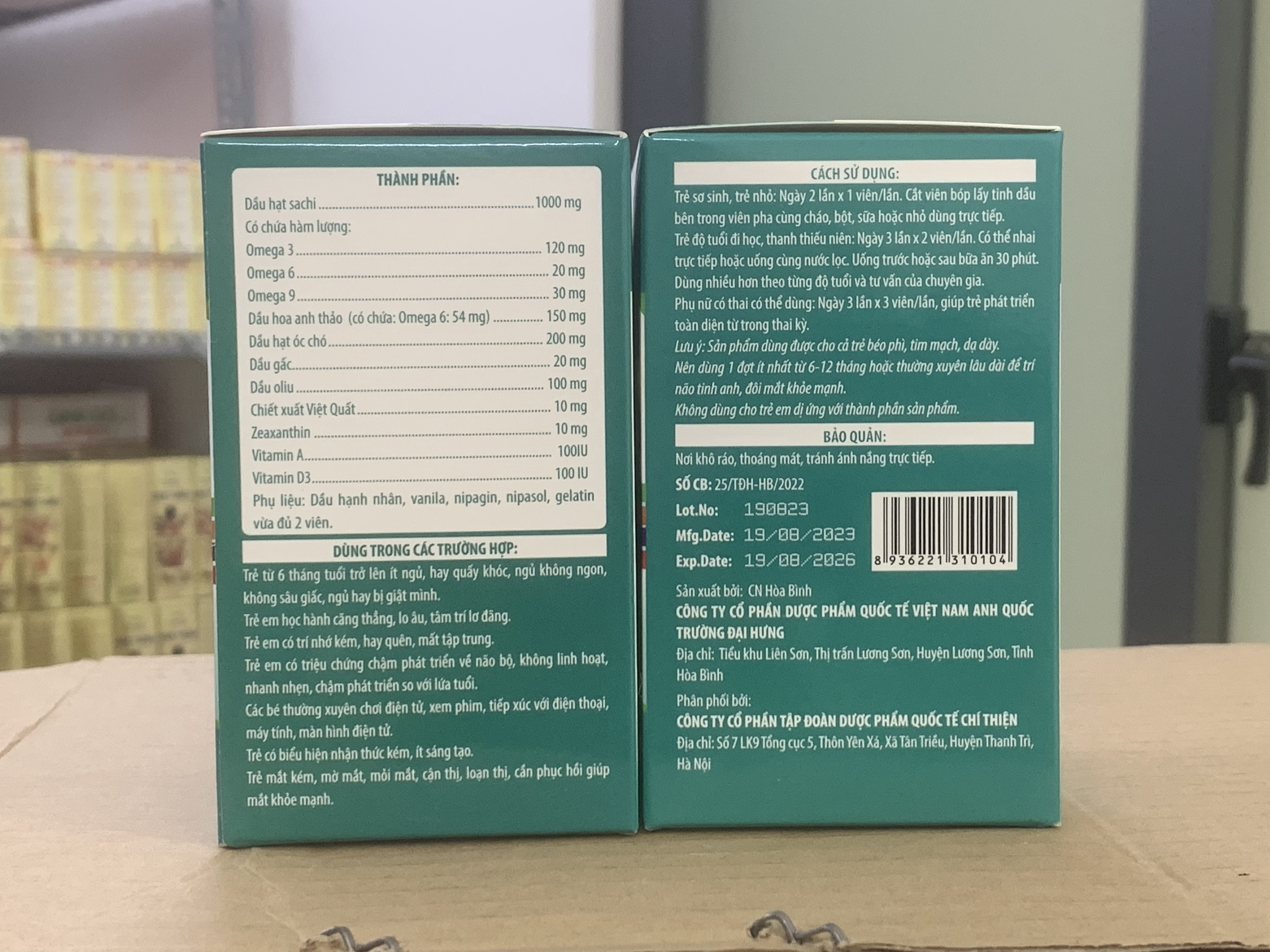 Mua tại Tiktok- THÀNH PHẦN: Dầu hạt sachi 1000 mg Có chứa hàm lượng: Omega 3 120 mg Omega 6 20 mg Omega 9 30 mg Dầu hoa anh thảo (có chứa: Omega 6: 54 mg) 150 mg Dầu hạt óc chó 200mg Dầu gấc 20 mg Dầu oliu 100 mg Chiết xuất Việt Quất 10 mg Zeaxanthin 10 mg Vitamin A 100 IU Vitamin D3 100 IU Phụ liệu: Dầu hạnh nhân, vanila, nipagin, nipasol, gelatin vừa đủ 2 viên.