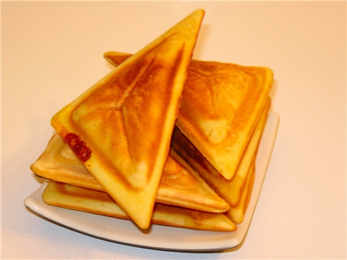 - Bạn có thể kẹp sandwich với bơ, pate, thịt, trứng, mứt quả... và bỏ vào máy. Sau 1 - 2 phút, phần vỏ bánh sẽ được nướng giòn, phần nhân bên trong vừa chín tới tạo vị thơm ngon, hấp dẫn tạo thành chiếc bánh sandwich hấp dẫn, thơm ngon.