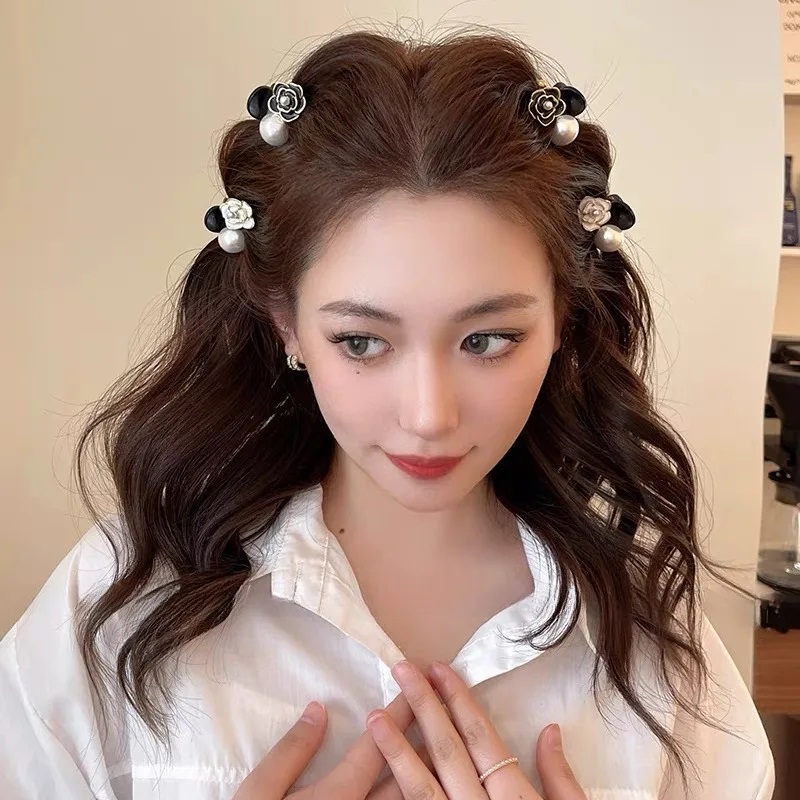 ✨Kẹp tóc mái mini nơ đính hoa hồng camellia
