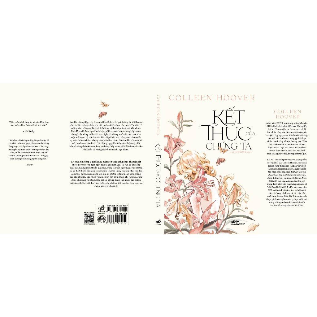 Mua tại TiktokSau khi tốt nghiệp, Lily Bloom rời khỏi thị trấn quê hương để tới Boston sống tự lập và hiện thực hóa giấc mơ mở tiệm hoa của mình. Tại đây, cô vướng vào mối quan hệ tình ái lạ lùng với bác sĩ phẫu thuật thần kinh Ryle Kincaid. Mỗi người đều bị người kia cuốn hút, nhưng Lily muốn điều gì bền vững dài lâu, còn Ryle lại không muốn bị trói buộc vào một mối quan hệ chính thức. Bất chấp khác biệt, cũng như nhờ nhiều sự kiện tình cờ thú vị không kém phần hài hước, họ vẫn đến với nhau và trở thành một gia đình. Thế nhưng ngay khi Lily cảm thấy cuộc đời mình không thể viên mãn hơn, cô bỗng thấy mình phải đối diện với điều đã khiến cô căm ghét bố mẹ mình: bạo hành. Kết thúc của chúng ta giống như món đồ uống được pha trộn rất khéo: vừa có vị ngọt ngào khó tả của tình yêu, lại có những cái đắng ngắt của cuộc sống gia đình, cùng vị buồn ngây ngây của những kí ức được hé lộ dần dần trong khi thưởng thức, và cũng phải nói đến cả sự hài hước duyên dáng làm dịu đi những trường đoạn căng thẳng của câu chuyện. Các nhân vật dù chính hay phụ, thậm chí rất phụ, cũng được khắc họa rất sống động mà lại không lấn át lẫn nhau, tạo thành một tổng thể hết sức hài hòa, một cuốn sách có thể làm hài lòng ngay cả những độc giả khó tính.