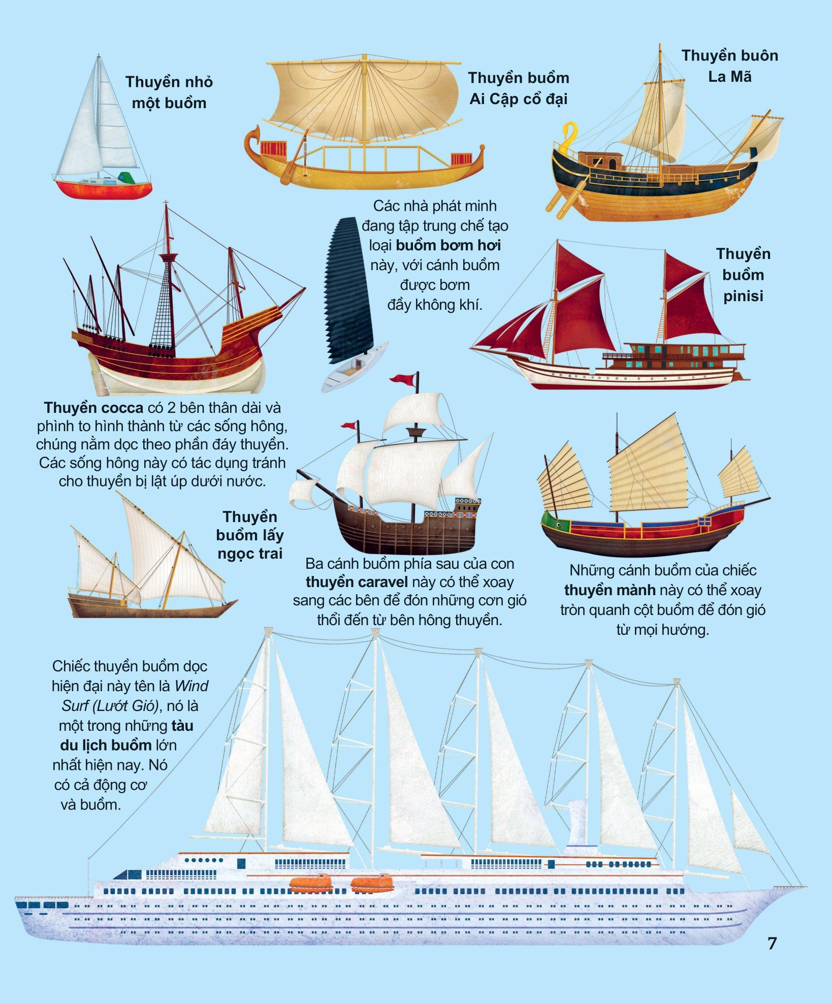 Khám Phá Các Phương Tiện Vận Chuyển Trên Thế Giới - Tàu Thuyền Và Những Phương Tiện Nổi Khác Rất nhiều tàu thuyền chạy bằng sức gió. Gió thổi căng những cánh buồm và đẩy