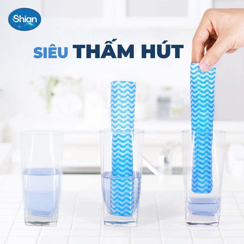 - Khăn ướt chuyên dụng SHIAN là sự kết hợp hiện đại giữa khăn khô và dung dịch làm sạch trong 1 sản phẩm. Việc lau chùi trở nên nhanh chóng và dễ dàng thay vì phải thêm 1 chất tẩy rửa, kem hoặc dùng xô để lau chùi.