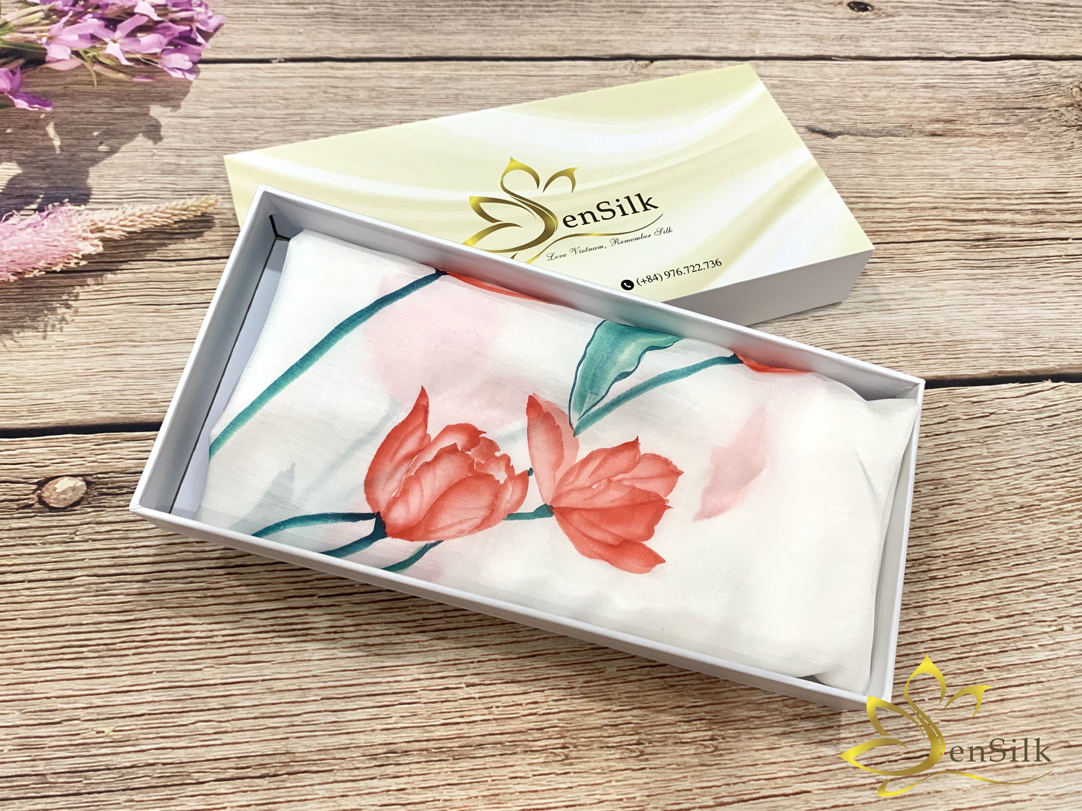 Quà Tặng Doanh Nghiệp 1-0-2 Khăn Lụa Vẽ Tay Thuỷ Ấn - SenSilk #handmade #quatangcaocap #khanlua