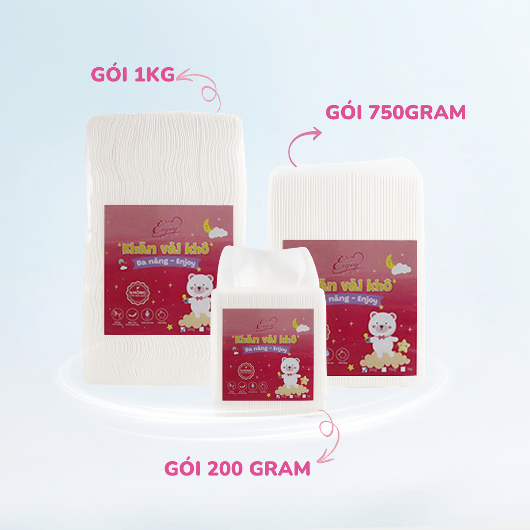Khăn vải khô đa năng dành cho mẹ và bé ENJOY lau khô lau ướt 200gram Khăn khô Enjoy được sản xuất từ 100% vải không dệt cao cấp, mềm mại và lành tính