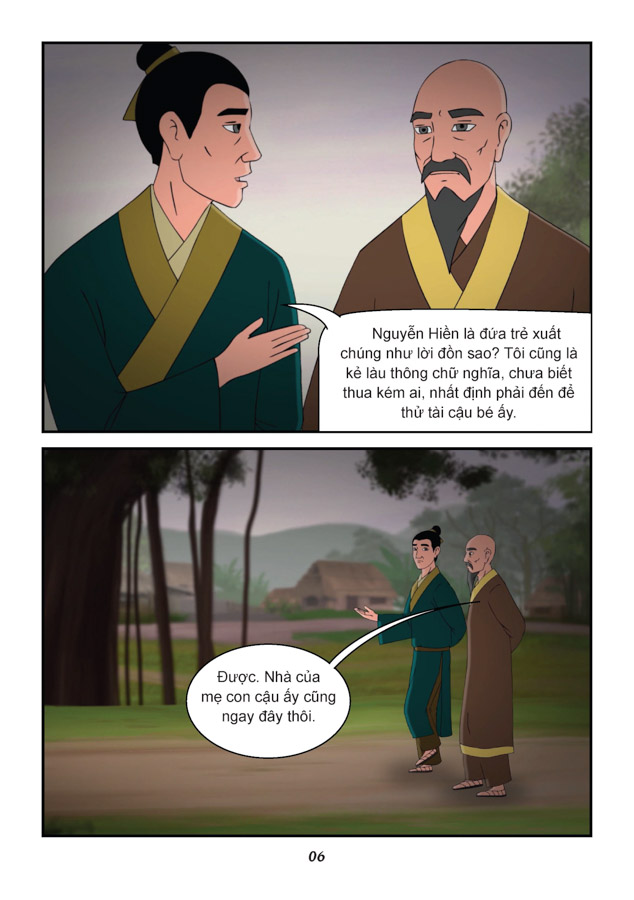 Bộ sách “Truyện tranh lịch sử Việt Nam – Khát vọng non sông” gồm hàng trăm tập, giới thiệu ngắn gọn, sinh động những truyền thuyết đầy tính nhân văn và những sự kiện, những nhân vật nổi tiếng trong lịch sử hàng nghìn năm của dân tộc Việt Nam. Thân thế và tuổi thơ của Trạng Nguyên Nguyễn Hiền. Nguyễn Hiền sinh năm 1234, huyện Thượng Hiền, phủ Thiên Trường, mồ côi cha từ nhỏ, được mẹ cho đi học, ông vốn thông minh lại chăm chỉ học tập và có tài xuất khẩu thành chương. Ông đỗ trạng nguyên khi mới 13 tuổi, là vị trạng nguyên trẻ nhất trong lịch sử Việt Nam thời vua Trần Thái Tông.