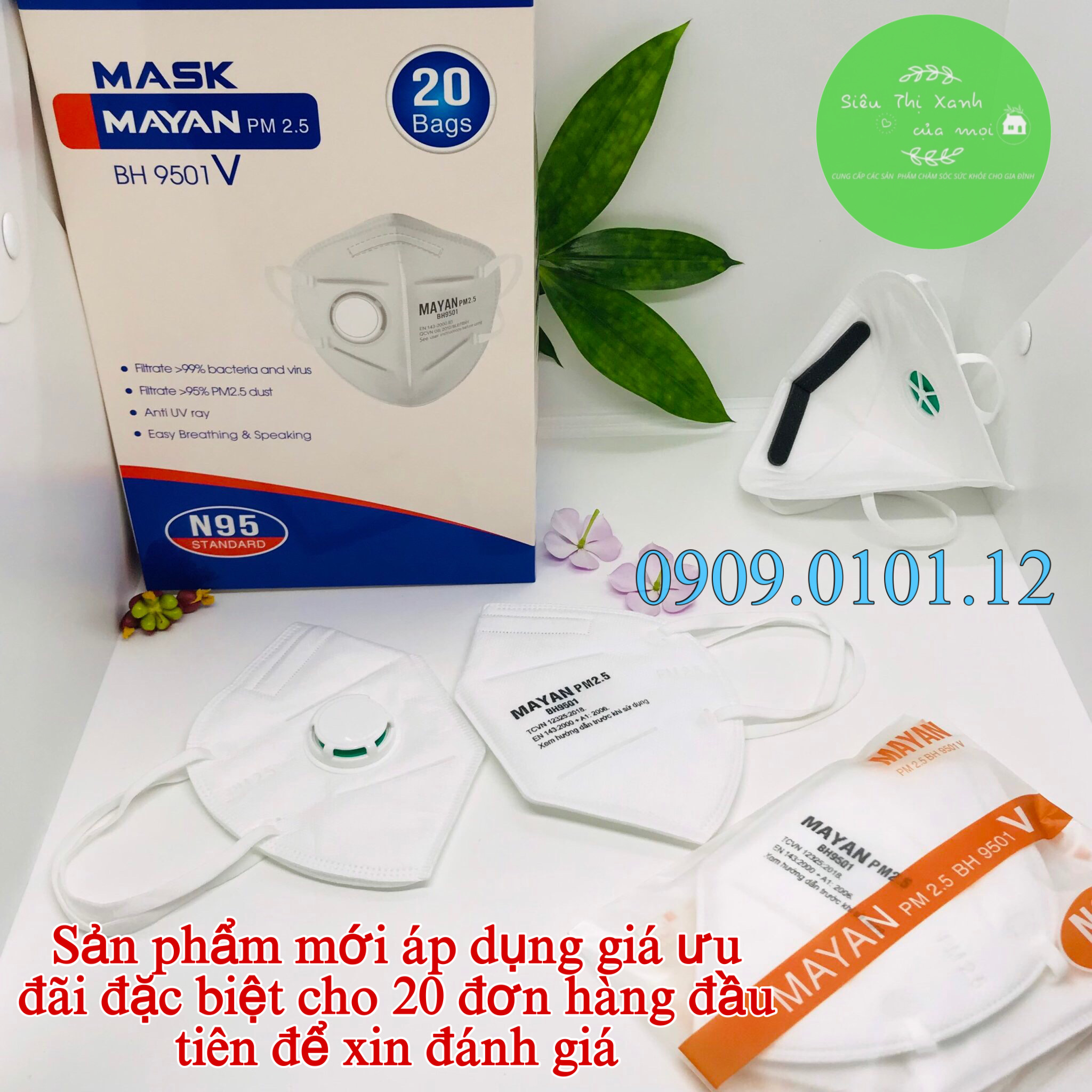 Siêu Thị Xanh Của Mọi Nhà cảm ơn Quý Khách Hàng đã tin tưởng sử dụng sản phẩm của chúng tôi. Chúc Quý Khách Hàng luôn sức khỏe. Khẩu Trang N95 Có Van thở - Đệm Mũi Cao Cấp [Mayan PM 2.5 BH 9501V - Chính Hãng - 4 Lớp Kháng Khuẩn - Than Hoạt Tính - Theo Tiêu Chuẩn Hoa Kỳ] - Thương Hiệu Được Thủ Tướng Chính Phủ & Quốc Hội Tin Dùng. Công Ty Sản Xuất và Phân Phối: Công ty TNHH VPC Việt Nam.