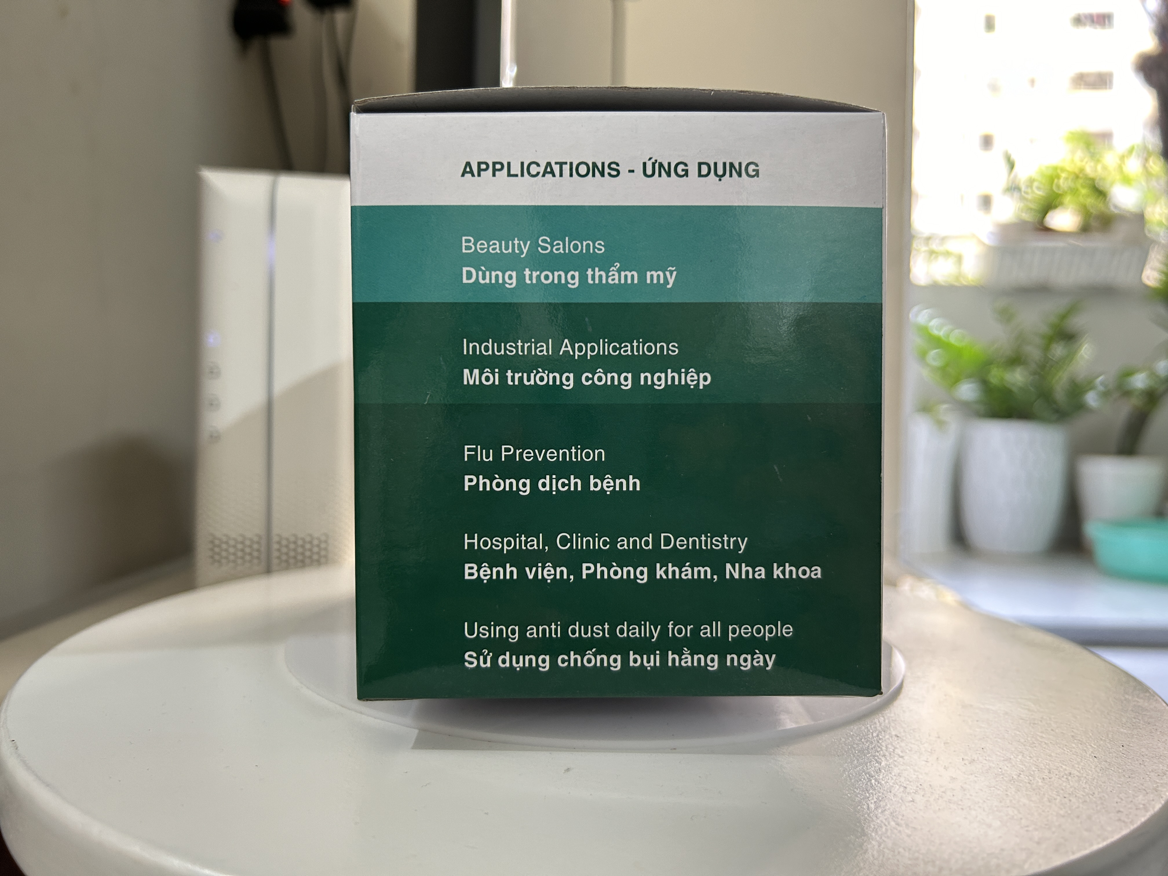 *Xuất xứ: Việt Nam *Hạn sử dụng: 2.5 năm kể từ ngày sản xuất *Số lượng: 5 cái ĐẶC ĐIỂM NỔI BẬT _Màng lọc chống UV 98% Công nghệ Màng lọc vật lý đặc