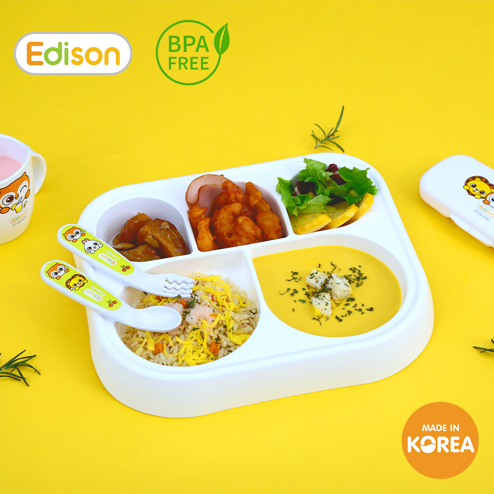 Khay ăn dặm chia ngăn Thương hiệu EDISON Hàn Quốc có đế chống trơn trượt cho bé là trợ thủ đắc lực trong những bữa ăn của trẻ ĐẶC ĐIỂM NỔI BẬT Khay ăn dặm